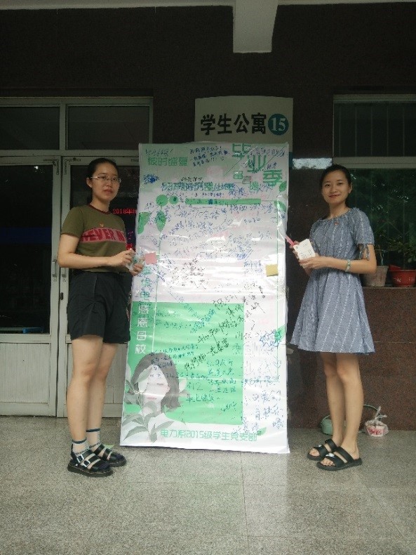 支部成员在宿舍楼下设置感恩母校系列留言板,为即将离校的学子搭建一个表达毕业心情和对母校感恩之情的平台。活动一经推出就深受欢迎,留言板上满满的祝福和承诺,字字句句都是毕业班学子对母校的不舍与感激。