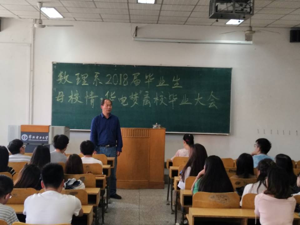 本网保定讯:5月24日下午16:00,数理系在教七楼224召开2018届毕业生“母校情,华电梦”离校教育大会,系党委副书记刘持伟、团委书记李金花以及2018届全体毕业生参加了会议。