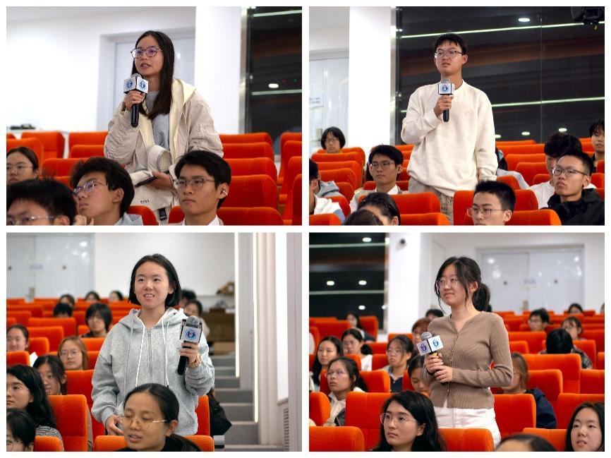 在随后的现场问答环节,同学们围绕着参与时间节点、项目立意、项目打磨等具体问题进行提问,王楚涵结合具体情况及自身实践经验进行详细解答。