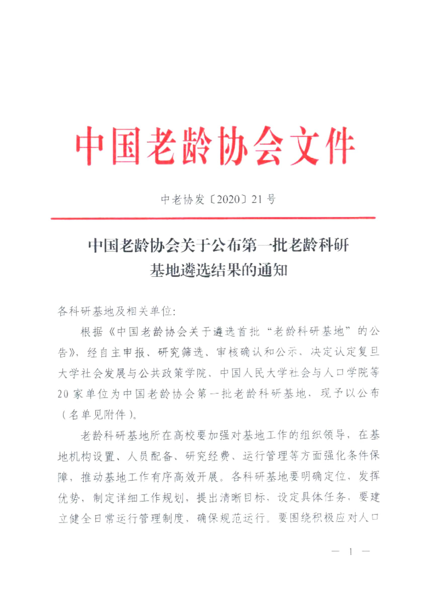 近日,全国老龄工作委员会直属的中国老龄协会对首批老龄科研基地遴选结果进行公示,我校人文与社会科学学院与中国人民大学社会与人口学院、复旦大学社会发展与公共政策学院等20家高等院校科研机构入选。其中,北京高校共4家,分别是中国人民大学社会与人口学院、华北电力大学人文与社会科学学院、国家开放大学老年大学和首都经济贸易大学劳动经济学院。