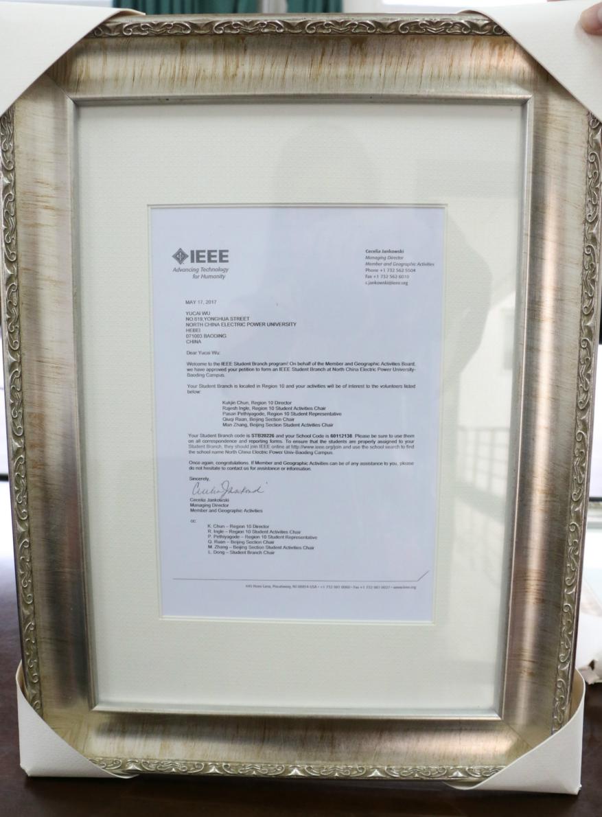 仪式上,董力文就IEEE学生分会及其学生分支的申请过程和组织架构进行简介。从2016年12月至今,在校团委的支持下,在IEEE学生分会筹备组的多方组织及努力沟通下,经IEEE总部正式批准,IEEE华北电力大学(保定)学生分会于近日获批成立。学生分会由电力工程系武玉才担任顾问,现有第一批学生成员共12名,是校研究生会服务在校师生国际学术交流的重要平台。