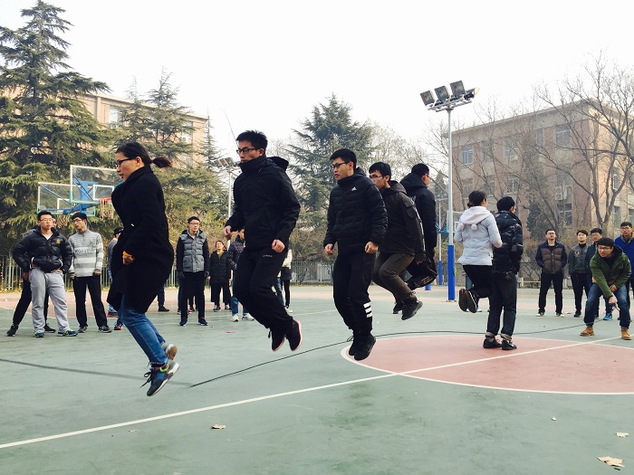 毽球项目拉开了“运动起来”系列活动的帷幕,比赛中,电力系学子们身形灵活矫健,场地上欢声笑语连绵不绝。随后的跳绳比赛精彩纷呈,靓丽的女运动员以每分钟跳绳206次夺得女子个人组第一名,跳大绳的团体赛也让学子们重温了年少时的快乐时光。两人三足比赛以接力的形式,将同学们的心牢牢地凝聚在一起,“一二一”的口号为萧条的冬天增添了一抹别样的生机。