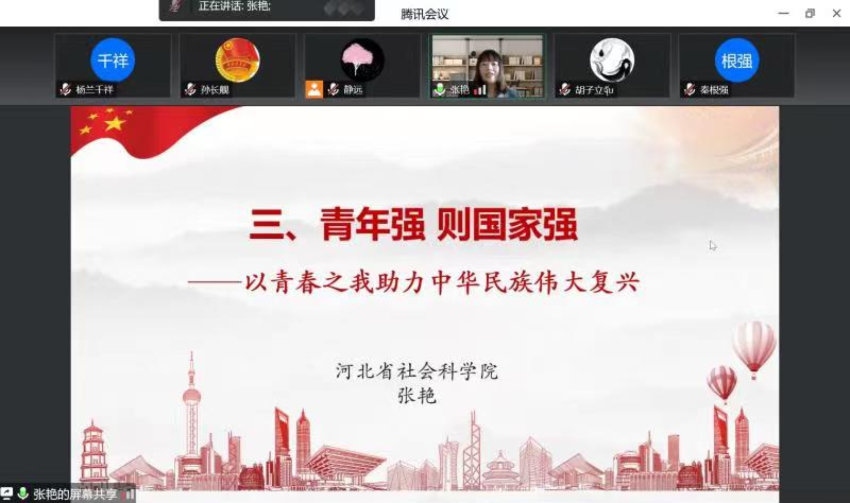 本网保定讯:为深入学习宣传贯彻党的二十大精神,贯彻落实习近平总书记关于青年工作的重要论述,培养志存高远、勇担使命的新时代新青年,11月13日上午,团委(保定)邀请河北省社会科学院政治文化教研处副处长胡子立、经济教研处张艳为青马学员线上开展党的二十大精神专题辅导,全体青马学员认真聆听授课。
