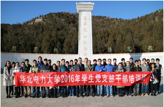 活动伊始,党委研究生工作部刘献伟老师和昌平区烈士陵园管理处付蔚主任为我校在昌平烈士陵园设立的“华北电力大学研究生爱国主义教育实践基地”揭牌。在揭牌仪式之后,同学们带着无限的敬仰参观了昌平革命历史纪念馆,在烈士陵园前的广场举行悼念仪式。