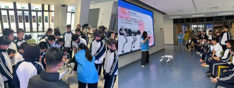 团队成员现场展示了智能四足机器狗。通过对比传统人工巡检与机械狗智能巡检的差异,同学们直观感受到科技创新为能源安全运维带来的颠覆性变革,引发同学们热烈讨论。“原来机器人真的能代替人工去那些危险的地方巡检,既保障了叔叔阿姨们的安全,又能24小时不间断工作,这才是科技该有的温度,我以后也要成为一名人工智能工程师!”七年级杨思齐兴奋地说道。