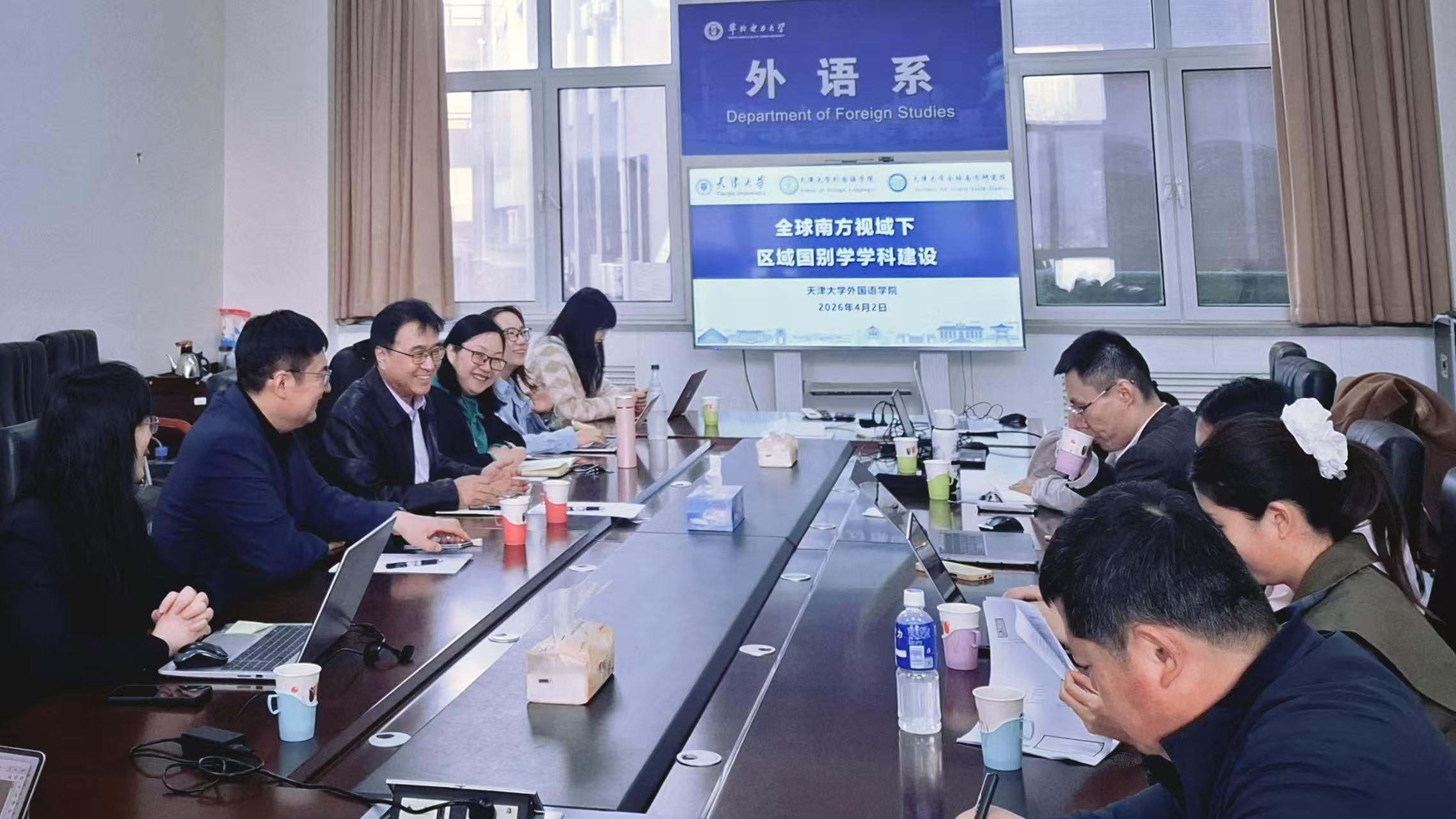 本网保定讯:为深入推进新时代教育教学思想大讨论,系统谋划外语学科转型发展路径,4月2日下午,外语系在教十一楼D106举办“区域国别学学科建设”专题讲座暨新时代教育教学思想大讨论学科转型交流研讨会。活动特邀天津大学外国语学院院长王立松教授担任主讲嘉宾,外语系行政负责人、教研室主任、硕士生导师、主任助理及青年博士教师等参加会议。活动由外语系主任高霄主持。