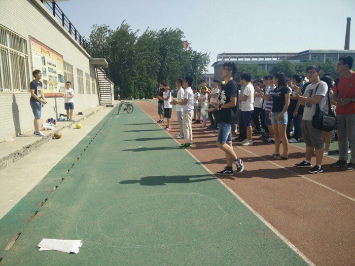 此次运动会共由六个项目组成,分别是摸石过河、一圈到底、滚雪球、心心相印、点球大赛和123木头人。各组队员都干劲十足,信心满满。第一个进行的项目是摸石过河,由各班参赛队员以接力形式利用三个砖块进行移动,单脚踩在砖块上进行前进。通信1401班凭借队友们肢体的协调性和灵活性,顺利完成接力并取得了1分57秒的好成绩。电子1401班也表现不凡,紧随其后。接下来的活动中各组队员都配合默契,比赛持续升温。在滚雪球环节,大家齐心协力,紧抓各自队员的手进行折返跑,像一条条彩带在操场飘动。在男女生紧密配合的心心相印环节,为了调高本队的积分,女生也巾帼不让须眉,主动背起男生。尽管在烈日下大家都汗流浃背,但大家玩得不亦乐乎,个个脸上都洋溢着喜悦的笑容。接下来的环节中大家更是团结合作,顽强拼搏。点球大赛异常激烈,各班男生都卯足了劲要零失误射门,嗖——球一跃而入,现场欢呼声、呐喊声不绝于耳。大家都沉浸在运动的快乐里,享受着运动的无限乐趣。
