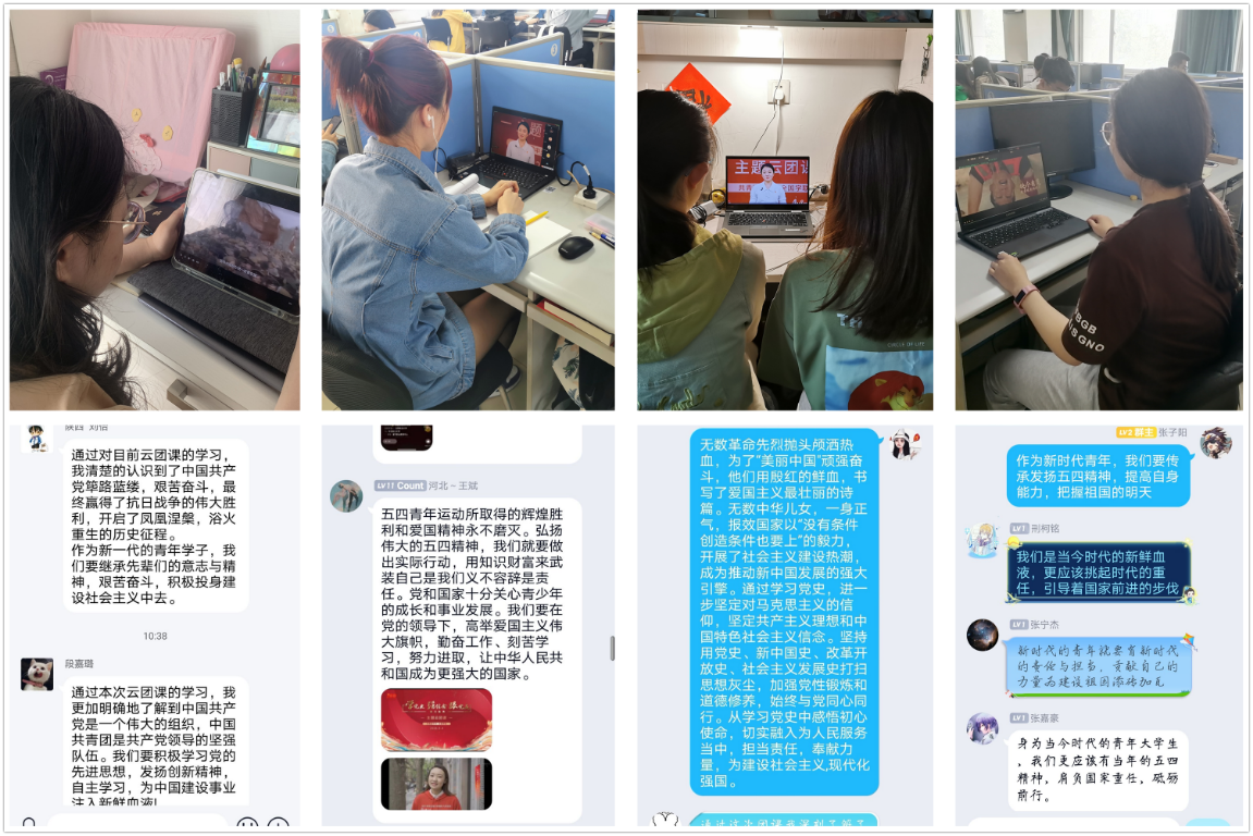 5月4日上午10点,全系本科生、研究生共89个团支部,近3000名团员青年集中收看团中央、全国学联举办的“学党史、跟党走、强信念”主题云团课。各支部组织青年团员在QQ群、微信群等社交平台,积极参与学习讨论。