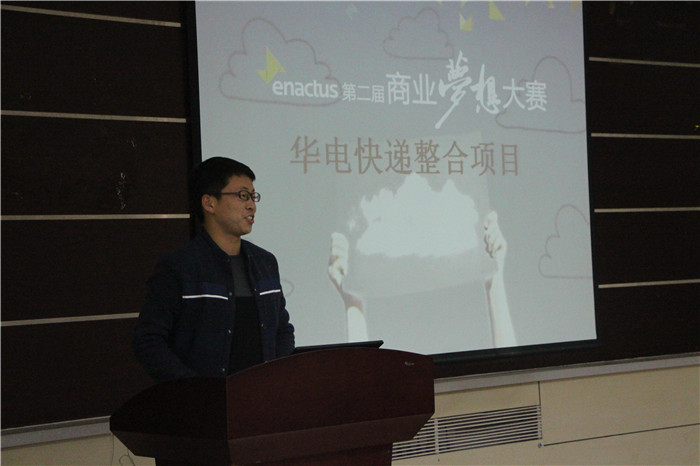 比赛开始之前,首先由华电创行团队队长段坤针对创行进行介绍。他强调到创行作为全球四大学生组织之一,通过富有企业家精神的行动来引领社会进步。作为大学生商业经营联盟,该团队已有五个项目获得国家专利。