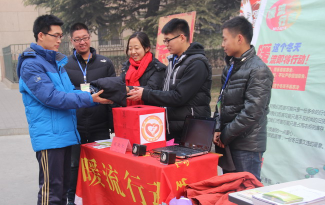 本网保定讯:12月25日,研究生院团总支组织举办的“暖流行动”爱心募捐活动拉开序幕,广大师生纷纷慷慨解囊,捐款捐物,为困难家庭的孩子捧出一份关怀,献上一片爱心。