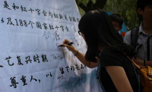 此次活动共有三个环节,分别为现场宣传、有奖答题和自愿签名活动。活动当天,经管系红十字会提前到现场做了充分的准备,展板上图文并茂,展示了世界红十字日的历史发展、基本原则以及精神内涵等,吸引行人驻足观看。展板上宣扬了红十字人道、博爱、奉献的精神,呼吁世界人民尤其是广大青年选取正确的目标定位和价值取向,通过实际行动支撑世界红十字事业发展。经管系红十字会全体成员就红十字精神等向路过的同学进行介绍解说,并邀请同学们参与现场有奖问答。在有奖答题环节中,系红十字会别出心裁,通知将相关题目放置于五彩气球中来增加同学们参与的热情。路过的同学们纷纷驻足展板前,学习并积极参与答题环节,现场气氛热烈。同学们在答题的过程中不仅巩固了关于“红十字”的知识,更深入体会了红十字的精神内涵。此外,路过同学自愿在展板上签名,希望通过这种方式表达自己愿意弘扬红十精神的意愿以及期望带给困难人民得到幸福的愿望。