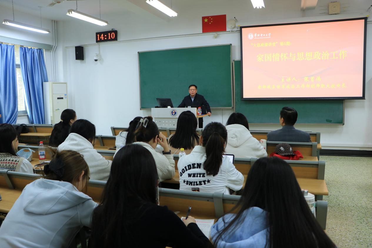 4月2日,马克思主义学院第六期“大思政课”讲堂开讲,特别邀请南部战区陆军政治工作部原副师职大校处长张首伟走进课堂,作题为“家国情怀与思想政治工作”的专题讲座。讲座由马克思主义学院院长王伟主持。