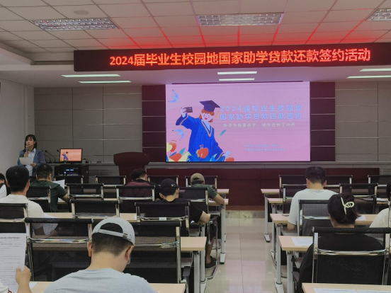 讲座之后,办理了校园地助学贷款的2024届毕业生在工作人员的指导下,进行了还款信息确认,并签署了还款协议和国家信用助学贷款还款承诺函。