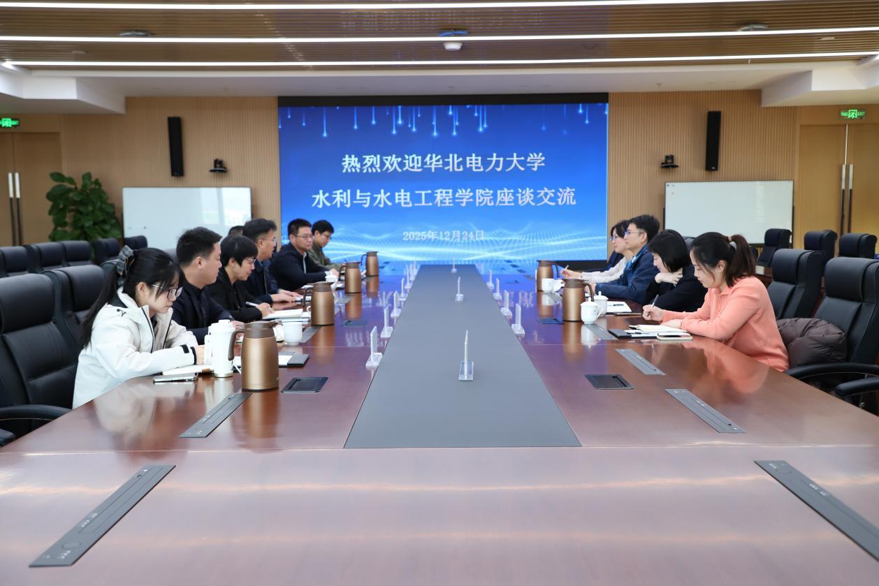 周付春系统介绍了集团的发展历程、核心业务布局与创新平台建设情况。他指出,面对新时代的治水难题,公司希望与华北电力大学水电学院在科研与技术攻关、多层次人才培养、产学研平台共建等方面开展系统化、实质性合作,共同推动行业技术进步与高质量发展。张尚弘介绍了学校及学院的发展概况、学科建设历程、专业设置体系与重点研究方向。他表示,学院高度重视与行业骨干企业的合作,期待未来双方在科研项目联合申报、学生订单式培养、科研平台共建、青年教师工程实践能力提升等方面开展深度协作,建立稳定长效的校企协同育人机制。