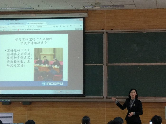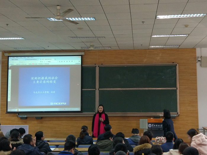 本网保定讯:为深入学习贯彻党的十九大精神,落实《华北电力大学学习贯彻党的十九大精神宣讲活动工作方案》,12月21日下午,计算机系党委在教十B201举办了第二期十九大精神学习专题报告会,特邀马克思主义学院副教授孙芳做了题为“深刻把握我国社会主要矛盾的转变”的专题报告。报告会由计算机系党委副书记陈火欣主持,图书馆直属党支部书记谢红、图书馆馆长高强组织带领支部全体成员与计算机系全体党员、重点培养对象聆听了报告。