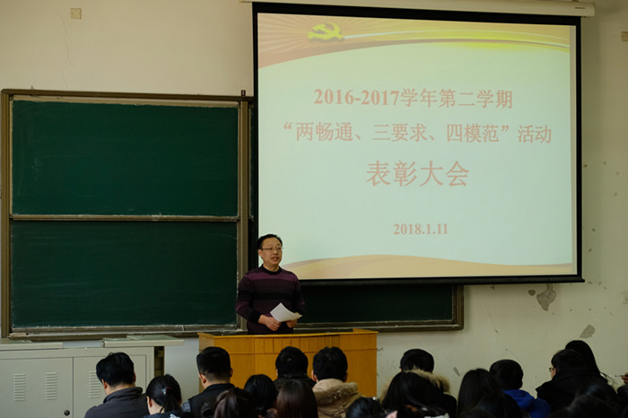 本网保定讯:1月11日中午,电力系在教十一B101举行2016-2017学年第二学期“两畅通三要求四模范”活动表彰大会,以鼓励在本期工作中表现突出的党员和入党积极分子。电力系党委副书记彭忠军出席并主持会议,各年级辅导员、全体党员及各班团支书参加了大会。