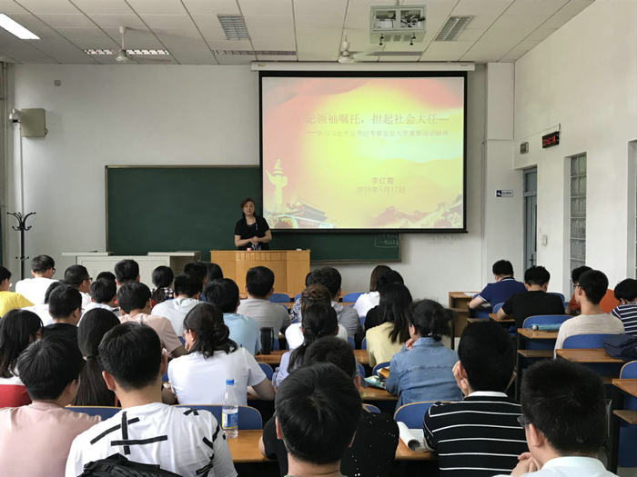 本网保定讯:5月17日下午,电子系举行了以“牢记领袖嘱托,担起社会大任”为主题的党课宣讲活动。党课由电子系党委书记李红霞主讲,电子系全体学生党员参加了本次党课。