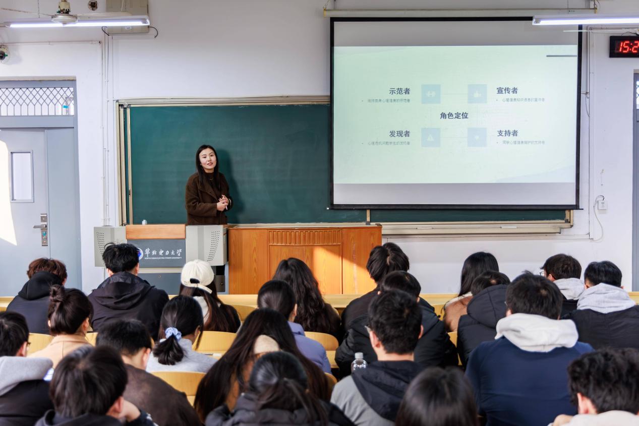 针对当前社会及校园中依然存在的对心理问题的污名化现象,李晓宇还特别强调了消除偏见的重要性,鼓励有困扰的同学主动寻求专业帮助,并介绍了我校心理健康教育与咨询中心的预约渠道和保密原则。最后,李晓宇为心理委员们的日常工作提供了具体建议,如开展“科普小讲堂”传播知识、“争当贴心小听友”耐心倾听、“做好健康‘传话筒’”顺畅沟通,以及“奇思妙想送温暖”营造互助关爱的班级氛围等,为参会学生提供了切实工作指南。