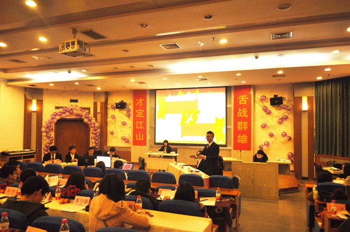 本网保定讯:12月11日晚,由法政系团总支主办的第十一届“才定江山,舌战群雄”主题辩论赛决赛在教九报告厅如期举行。法政系团总支书记陆伟、校团委张蓓蓓、社工1401班班主任石兵营、公管1401班班主任谭琪以及校自育会主任姜越、各院系团总支副书记应邀出席,各系辩论队队长担任评委。