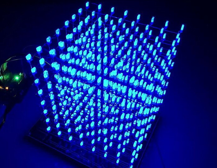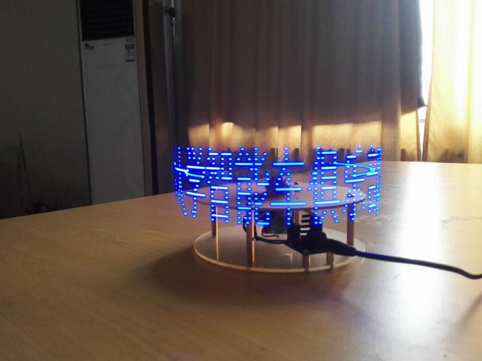 比赛现场智能车俱乐部的同学们还带去了自己亲自设计制作的科技作品:旋转LED和炫彩光立方。旋转LED利用无线供电技术“视觉暂留”现象,通过旋转显示任意文字和团;由512个LED组成的3D立方体,通过三维空间呈现出更加绚丽的效果,直接冲击着人们审美视觉,带给大家3D技术的科技体验。