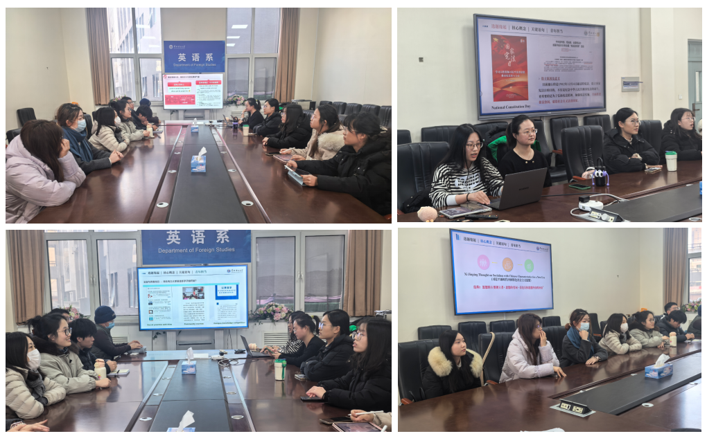 本网保定讯:为深入学习贯彻党的重要思想,搭建理论学习与语言实践深度融合的桥梁,12 月 15 日,英语系成功开展“中英文对照学习习近平总书记系列重要讲话”主题活动。活动中,英语专业学生党支部侯嘉怡、李芊郡、田佳瑶、许雪萌四位党员围绕不同主题,结合中英术语翻译进行专题分享,党支部全体党员、部分团支部团员代表参加了活动。