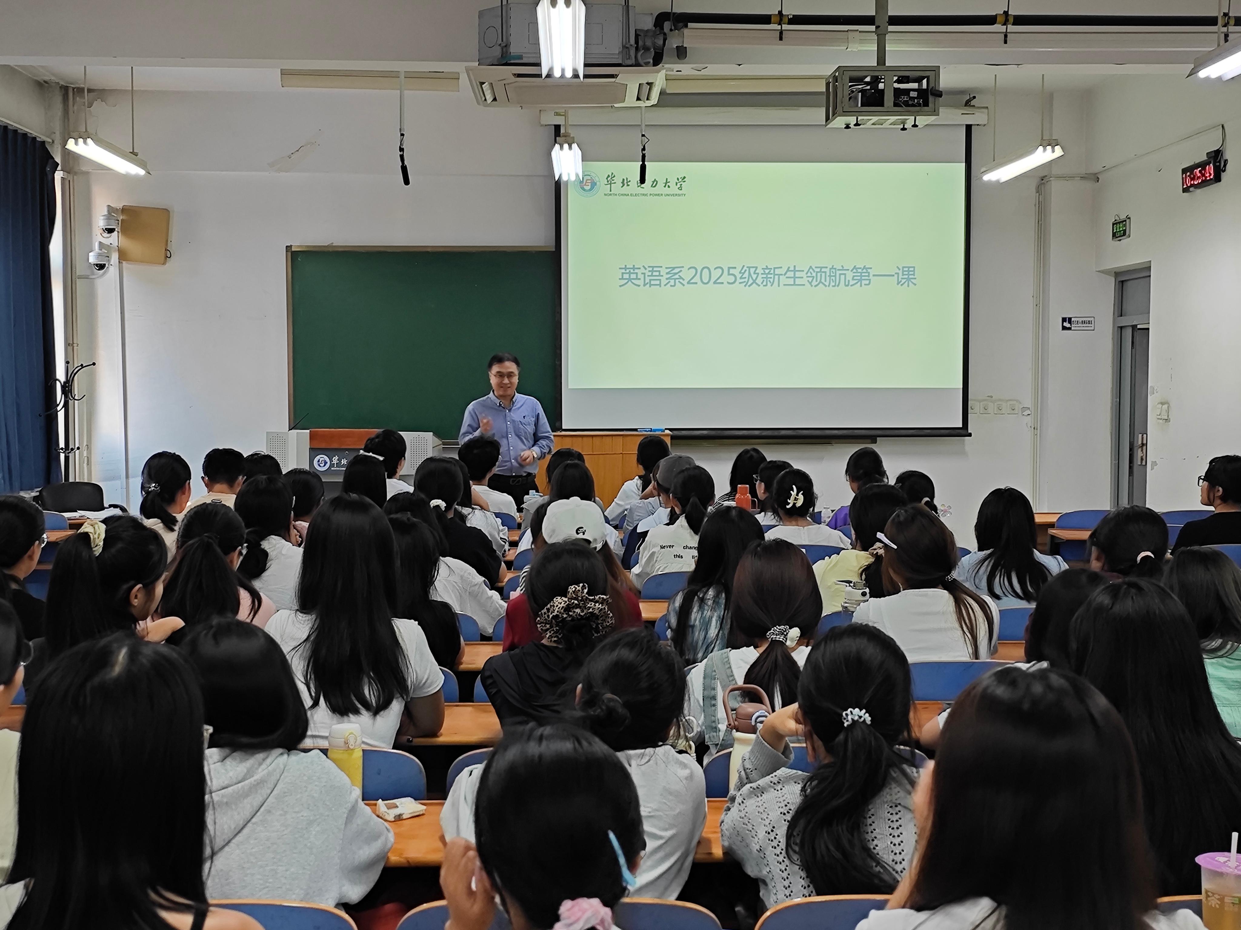 本网保定讯:9月25日下午,英语系 2025 级新生 “领航第一课” 系列教育第一讲在教十一楼 A204 正式开讲。本次活动由英语系主任高霄担任主讲人,2025 级辅导员陈亚东主持,2025 级全体本科新生全程参与,为新生快速适应大学生活、明确学习方向搭建了重要引导平台。