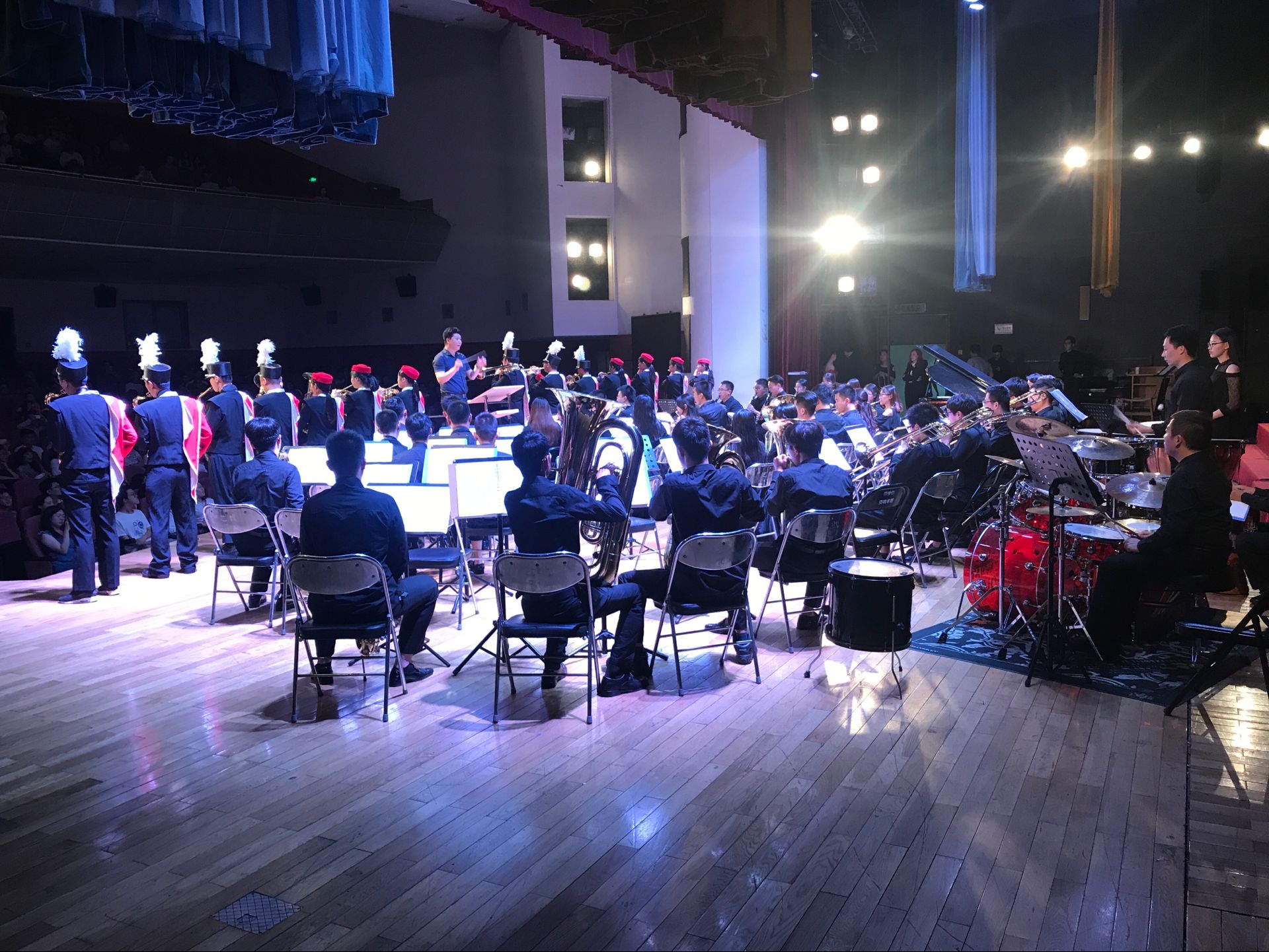 下半场的管乐合奏中,管乐团成员先是为大家带来了世界名曲《卡农》和《秋叶》,随后演奏了大家耳熟能详的《海阔天空》、《Let it go》和励志名曲《You raise me up》,灵活有新意的编曲方式让大家侧耳细听,并引得阵阵喝彩。最后一曲《我的未来不是梦》,由现团员和被特别邀请到场的、曾获得全国大学生管乐大赛金奖的大四团员们一同演奏,呈现出浓浓的乐团情怀。
