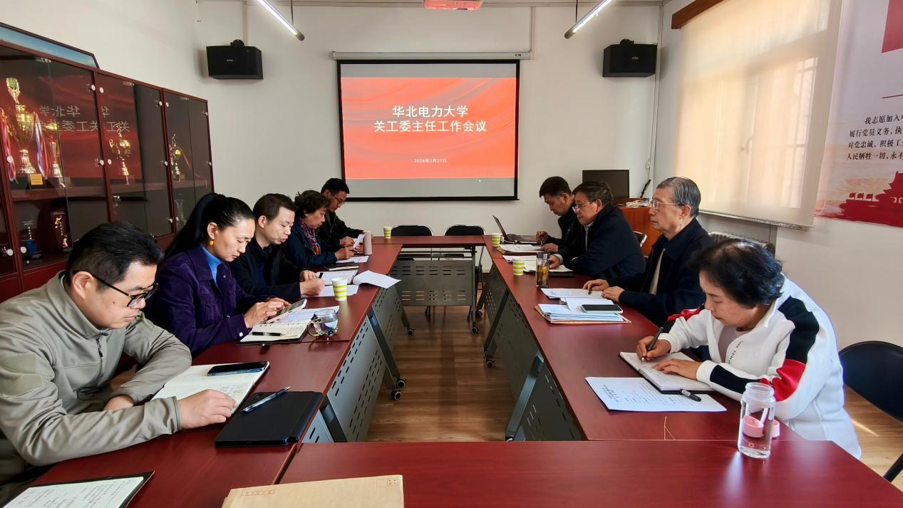 为深入学习贯彻党的二十届四中全会精神、习近平总书记考察北京重要讲话精神,认真落实纪念中国关工委成立35周年暨全国关心下一代工作表彰大会精神,3月27日,华北电力大学新学期关工委主任工作会议召开。会议由校关工委常务副主任张金辉主持,北京教育系统关工委理论研究中心、网络新媒体工作研究中心主任朱常宝,副主任黄庆业、苑英科、聂国欣,秘书长林长强、郭雪清,副秘书长马冬及秘书处工作人员参会。全面总结2025年工作成效,系统部署2026年重点任务,推动学校关心下一代工作高质量发展。