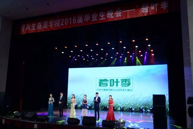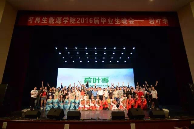 6月8日晚,可再生能源学院12级毕业生晚会“碧叶季”于主楼礼堂隆重举行。莅临本场晚会的嘉宾有校团委副书记、艺教中心副主任王新军,电气与电子工程学院党委副书记包小勇,能源动力与机械工程学院党委副书记黄向军,经济与管理学院党委副书记赵军伟,数理学院党委副书记张顺涛以及可再生能源学院院长戴松元,党委书记刘永前,副院长李美成、副院长姚建曦,党委副书记张利、团委书记耿晔和12级各班班主任。