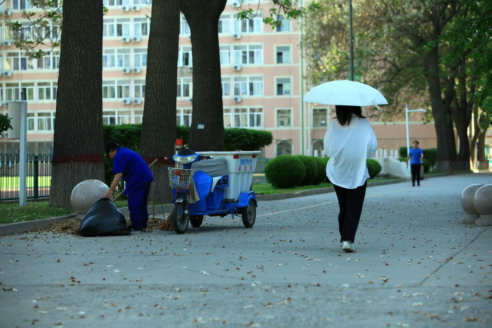 保洁人员则负责校园路面清扫工作,每日傍晚时分,他们身着工作服,推着保洁车,仔细清扫路面上的落叶等杂物,将“时时干净,处处整洁”落到实处。这份日复一日的坚守,恰似一份特殊的“礼物”,以焕然一新的环境静候师生假期归来。