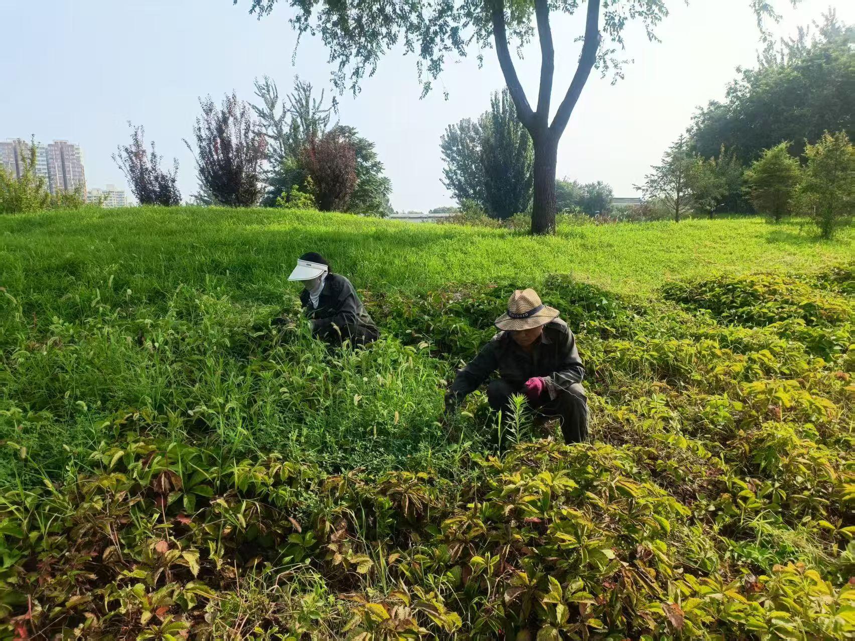 假期清晨七点,校园仍一片宁静。物业部绿化组工作人员已全员到岗。他们分散在草坪、灌木丛及行道树旁,俯身拔除杂草、精准修剪枝丫、细致打理绿篱,对校园植被进行全方位养护。尽管假期师生流动减少,绿化组仍严格遵循作业标准,清除枯枝杂叶、修整树木冠形,既消除安全隐患,也为校园景观注入盎然生机。力求在师生返校时呈现出整洁、生机勃勃的校园环境。