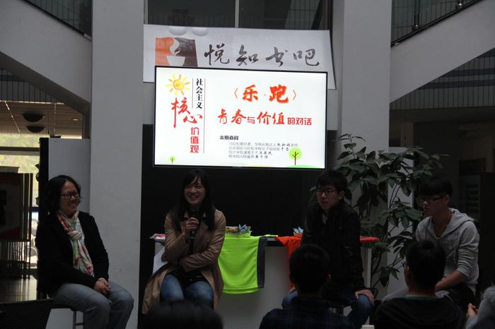 张新娟老师客串主持,开场跟各位嘉宾探讨了活动主题“乐·跑”的含义。嘉宾们一致认为,“乐·跑”对于业余跑友来讲就是“乐于跑步、跑步快乐和听着音乐跑马拉松”,三点归一就是“放轻松,享受运动、享受学习、享受生活”。