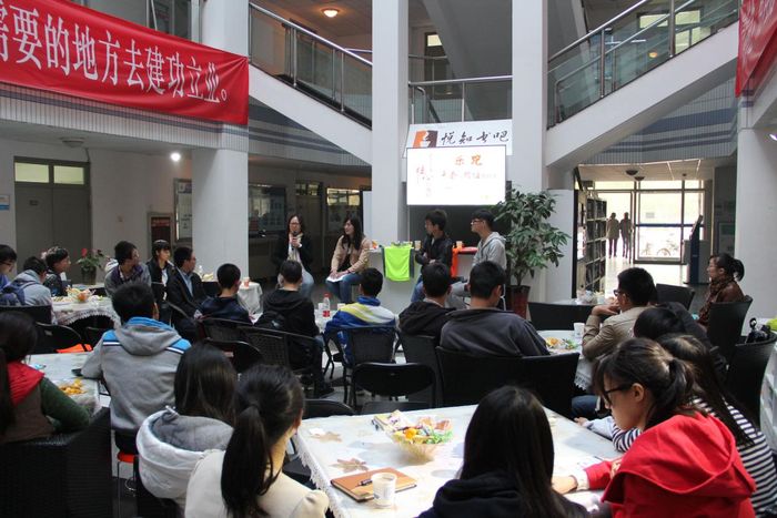 当现场有同学问及“如何协调日常繁忙的工作或学习与运动的关系”时,张老师说,时间管理也是一门学问。在成长的过程中,各种诱惑都在向你招手,但你要明白你最看重的是什么,在自己的能力范围内排上几件,然后用科学的方法为之付出努力。温馨而有力的话语,让在场的各位同学深受鼓舞。同时,她认为在体育运动中能够锻炼坚韧的毅力和追求卓越的精神,这些也是我们所倡导社会主义核心价值观的重要内涵。每个人不论是对待自身应该承担的职责,还是业余爱好,都应该追求“乐”----乐于和快乐,所谓“乐业”,这应该是比“敬业”不差的境界。在重拾跑步运动的三年多来,基本能够做到坚持每周慢跑2-3次,每次1小时。运动鞋随身携带,走到哪跑到哪。平时会查阅相关书籍资料,制定跑步计划,做到科学运动。张老师认为当一个人肩负着工作、家庭及社会多方面的责任,就会发现强健的体魄才是立世为人之基石。在不懈坚持下,一些意外的收获也渐渐改变着她的人生——许多日常工作生活中琐屑的烦恼与忧愁,在独自奔跑的日夜里会得以思考与开解。张老师希望同学们也能如她一般找到跑步的乐趣。