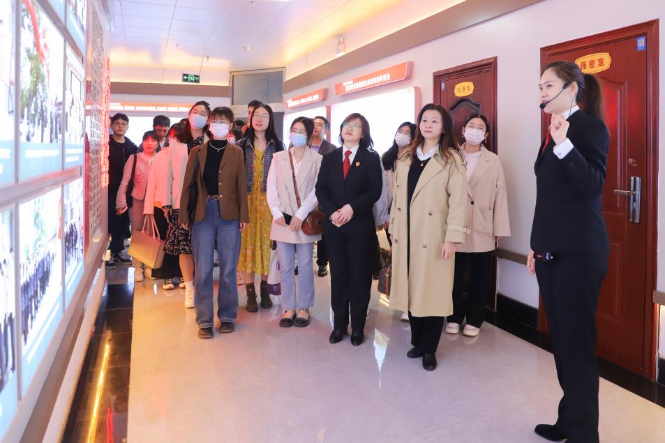 本网保定讯:3月30日,法政系一行赴保定市中级人民法院参观交流,法政系部分研究生参加,审判委员会专职委员张晓静等介绍了保定中院在一站式诉讼服务体系建设、智慧法院建设等方面取得的成效。