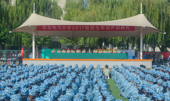 最后沈岚向军训团授旗,全体师生合唱华北电力大学校歌。2017级新生军训将持续到9月17日,内容包括紧贴国际国内形势变化的军事理论教学、更加实用化的军事技能训练和更加丰富多彩的文化活动。在今年的军事技能训练中,学校还将在拓展训练内容和提高训练强度方面进行探索创新。组织开展战地救护、防火消防演练和应急避险等项目,进一步提高军训工作质量。同时,鼓励各学院结合院系和专业特色开展训练工作,将专业教育和军训工作相结合,促进学校军训内涵的进一步提升。