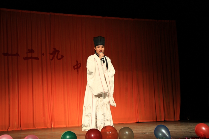 第二轮比赛要求选手们临场应变,用指定的不同语气朗诵同一段话。当要求身着汉装的选手分别用阴森恐怖和激情昂扬的语调朗诵校歌的歌词时,全场观众们不禁被他的表现所感染,笑声此起彼伏。其余选手也纷纷各展所长,将每一句话的情感展现得淋漓尽致博得阵阵喝彩。大赛的最后,由王爱平老师对大赛进行了点评,为选手们在朗诵方面的提出了宝贵的意见和建议,并以朗诵艺术团成立的契机激发了对同学们对朗诵的热情并号召同学们积极参加与朗诵有关的活动。接着由张树全老师朗诵了一首《海燕戒》,以好逸恶劳的小海燕为例用声情并茂的方式教育和激励我们要做踏实勤奋的人。