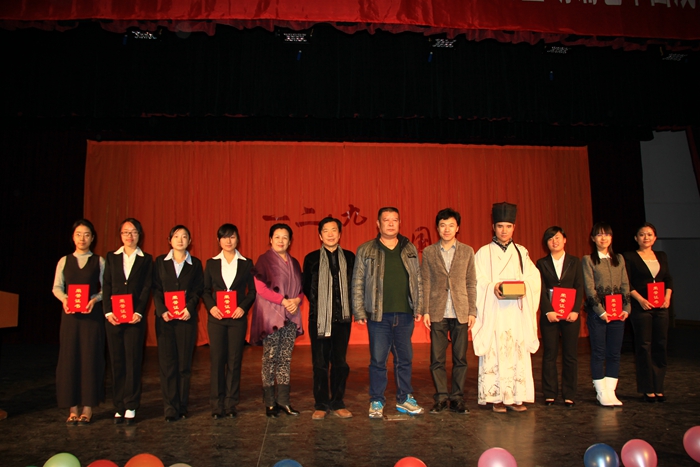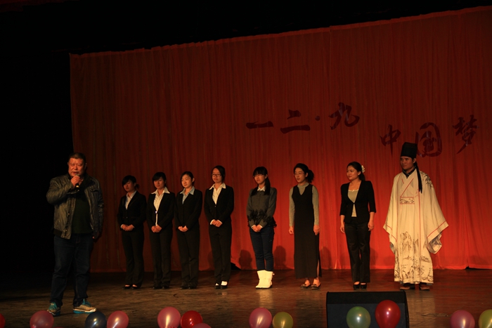 12月9日晚,由校团委和朗诵演讲辩论协会主办纪念“一二 九运动”暨朗诵艺术团成立的朗诵演讲比赛在教三报告厅举行。担任比赛的评委有:首都青年朗诵艺术团副团长王爱平老师,北京东方大学语言传播学院院长张树全老师,景声朗诵艺术团团长安丽敏老师,我校团委书记林长强、副书记王新军。