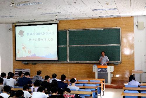 本网保定讯:为了让同学们进一步认识考研、明确目标,激发学生考研热情与积极性, 5月30日下午,数理系2019届毕业生考研宣讲动员大会在教十B101举办。数理系主任阎占元、党委副书记刘持伟、理论物理研究所所长白占武、光学研究所所长张贵银、数据科学与统计分析研究所所长张亚刚、信息处理与控制研究所熊波出席会议,2015级全体学生参会。本次大会由辅导员何琦主持。