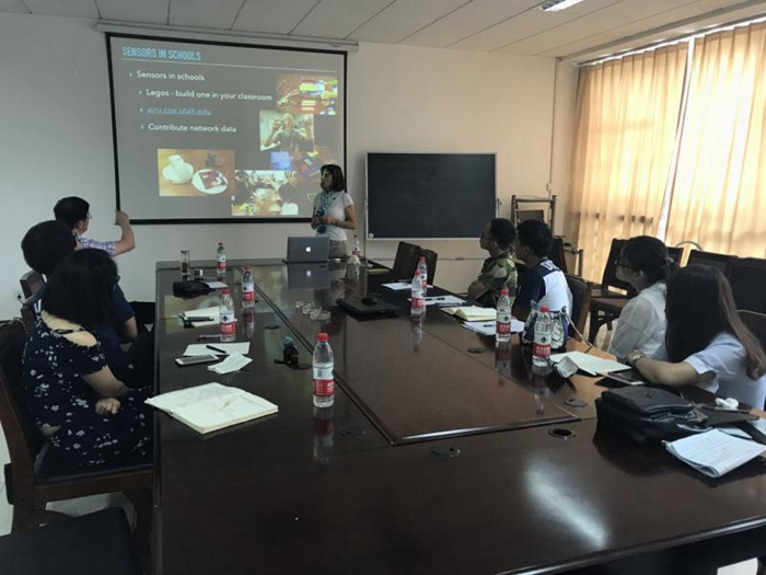 凯莉分别于6月26日与6月29日的上午在环境科学与工程学院的会议室与吕建燚的课题组成员进行了学术交流。课题组成员听取了凯莉的报告,报告内容包括“combustion particles and health effects”、“using low-cost sensors to understand air quality and exposure”、“life-cycle assessment and emerging energy sources”等等。小组成员在听取了报告之后提出了许多学术问题与博士进行交流。凯莉耐心的解答成员们的疑问且提出了许多指导意见,并向课题组成员展示了她的团队所研发出的pm2.5检测设备,课题组成员表示受益良多。