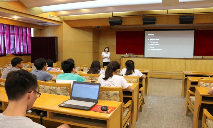 6月28日下午,凯莉在校学术报告厅做了题为“Fine Particulate Matter: Health Effects,sources and US Regulation”的学术报告,报告内容包括讨论细颗粒物、美国和全球的pm2.5的来源以及美国的pm2.5规则对健康的影响。作为研究人员和政策制定者,她给这个课题带来了独特的视角。凯莉的演讲十分精彩,同学们踊跃的提出问题与凯莉进行交流。