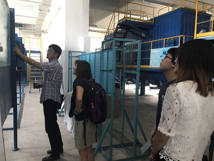 6月30日上午,凯莉参观了环境科学与工程学院实验室。吕建燚详细介绍了实验室各个设备与系统,凯莉对实验室电除尘系统、布袋除尘系统与电除尘系统以及选择催化还原技术(SCR)表现出了极大兴趣并给予了高度赞扬。
