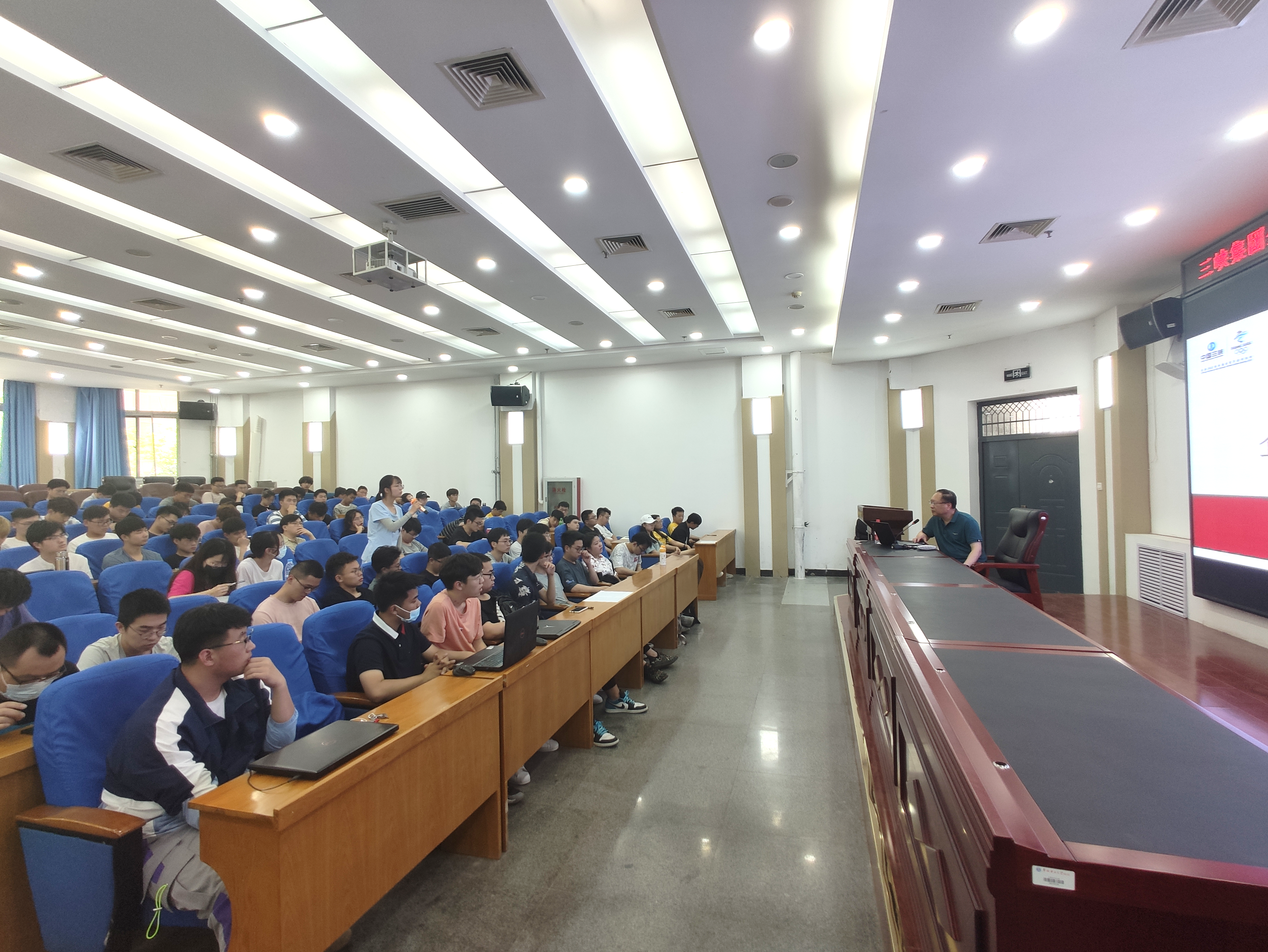 迟振波首先介绍了三峡集团的发展历史和企业文化,自成立以来,三峡集团不断发展,在防洪、发电、水资源利用、生态环境保护等方面发挥了重要作用,实现了从三峡走向长江,从中国走向世界的伟大飞跃。他讲道,我国水电装备目前处于世界领先地位,三峡集团将继续在技术层面不断创新,将大国重器牢牢掌握在自己手中。最后,迟振波与同学们现场互动交流,对在校期间的发展、个人成长规划为学生答疑解惑,呼吁同学们要在学习与实践中不断提升自我。