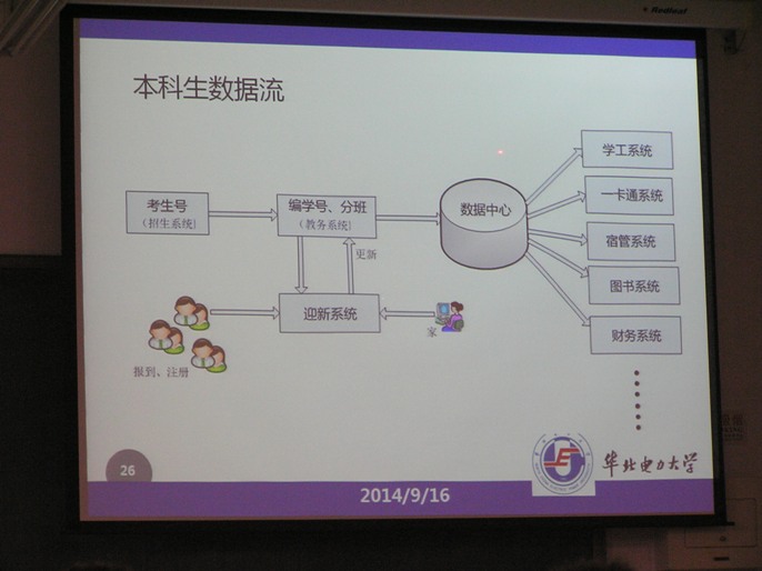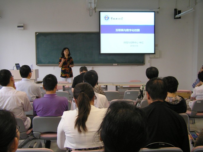 林红主任首先从最近发生的互联网大事件讲起,简单回顾了我国互联网20年发展及我校信息化发展取得的成绩并客观分析发展中存在的问题;介绍了我校“十二五”信息化总体规划和战略;通过图表重点向大家全方位展示数字化校园一期建设取得的成果:今年首次在迎新工作中采用迎新报到系统,使新生现场办手续的时间缩短到3分钟左右,大大提高了迎新工作的效率,受到师生及家长的好评。作为数字化校园建设的重要内容之一的校园一卡通也在今年上半年正式启用,师生员工每人持一张校园卡,实现“一卡在手,走遍校园”。最后她对我校信息化建设的未来进行了展望,相信通过“数字化校园”建设,全面提升学校管理和教学理念,推进学校向现代化大学迈进。