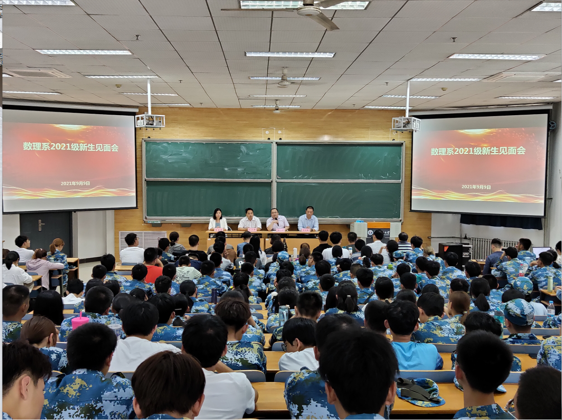 本网保定讯:9月10日中午,数理系2021级新生师生见面会于教十B101举行。数理系党委书记江卫春、系主任阎占元、系党委副书记李金花、系副主任史会峰,教研室主任、2021级班主任出席了会议,2021级本科生和研究生参加了会议。会议由2021级辅导员刘明浩主持。