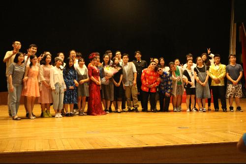 表演结束之际,各位演员做出自己在剧中的经典动作为谢幕。团长李祺祺上台致辞,她对为本场话剧辛苦付出的台前及幕后人员表示衷心感谢,并感谢观众们的到场。