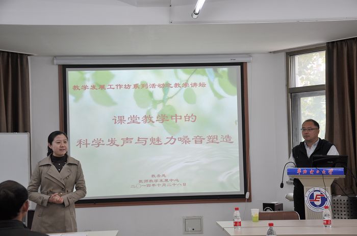 10月28日下午,教师教学发展中心举办教学发展工作坊系列活动之教学讲坛(第4期)。首都师范大学音乐学院声乐系教师、男中音歌唱家朱孟文老师为我校教师作了一场题为“课堂教学中的科学发声与魅力嗓音塑造”的报告。报告会由教师教学发展中心白逸仙主持。