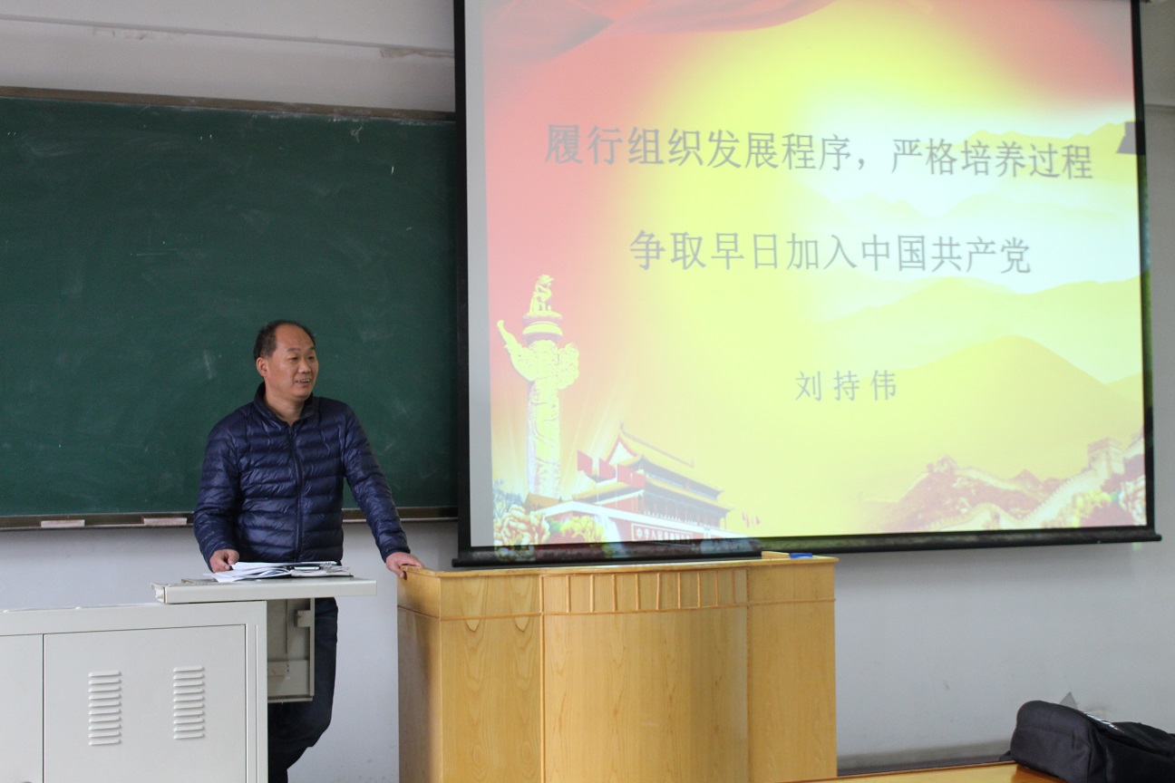 本网保定讯:根据学校关于2017年第二期重点发展对象和积极分子培养计划的安排,11月9日下午,英语系党总支对2017年第二期重点发展对象和入党积极分子在教十一A216举行了专题党课培训。党总支副书记刘持伟以“履行组织发展程序,严格培养过程,争取早日加入中国共产党”为主题进行了讲授。
