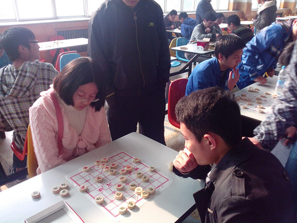 赛场上,棋手们分析着全局的形势,斟酌推敲着落子的位置。或手握棋子,审慎凝思,又或气定神闲,释然一笑。局势多变,选手们步步为营,下子有声,选手们成竹在胸。棋手们精妙的布局还吸引了一些同学参与其中。有的会为选手们的棋艺暗暗赞叹,有的更是积极和棋手们切磋棋艺。博弈的过程不仅陶冶了师生们的情操,更增进了同学们的情谊,锻炼了同学们谨慎稳重的处世态度,提高了自身的修养。