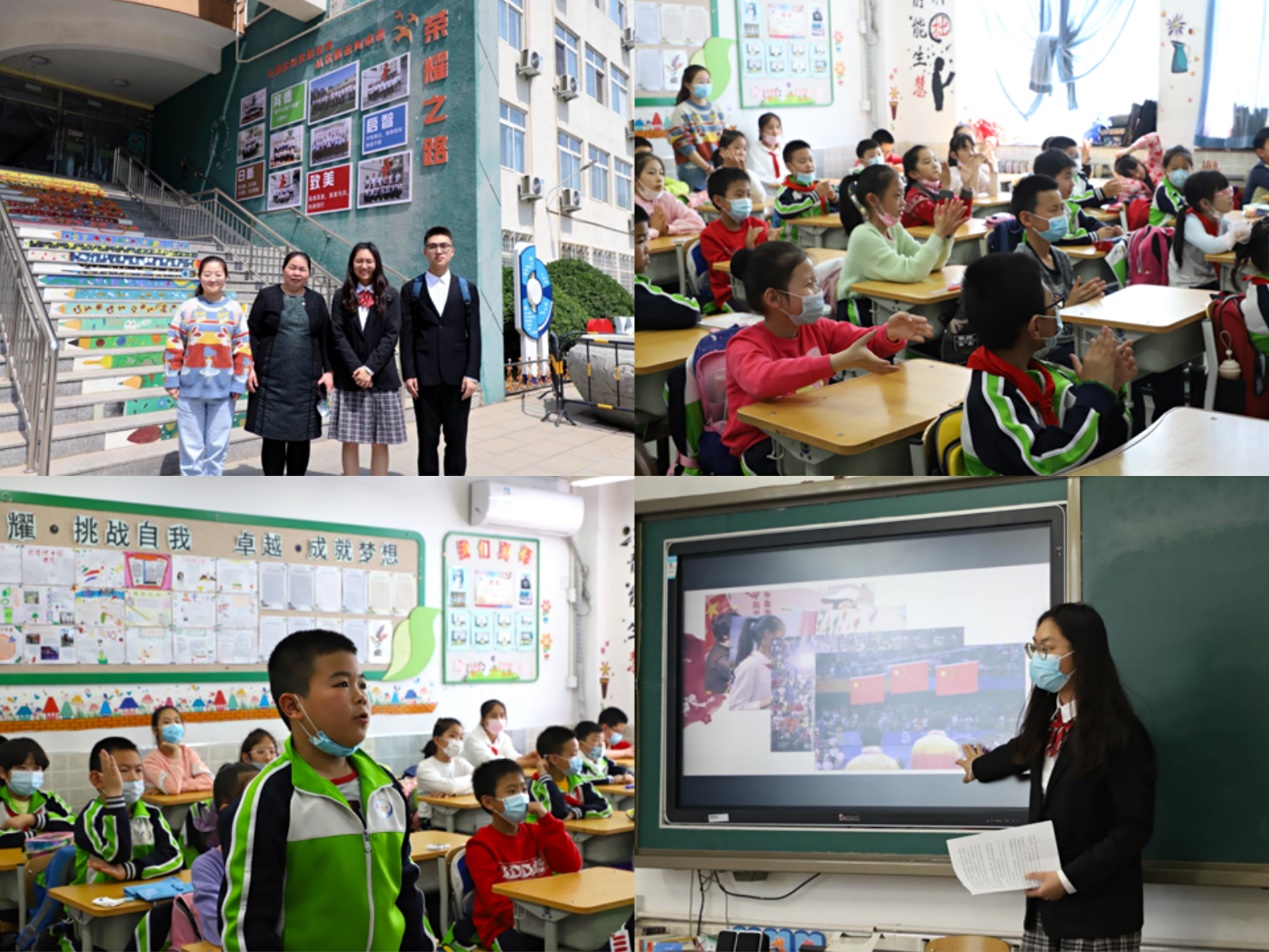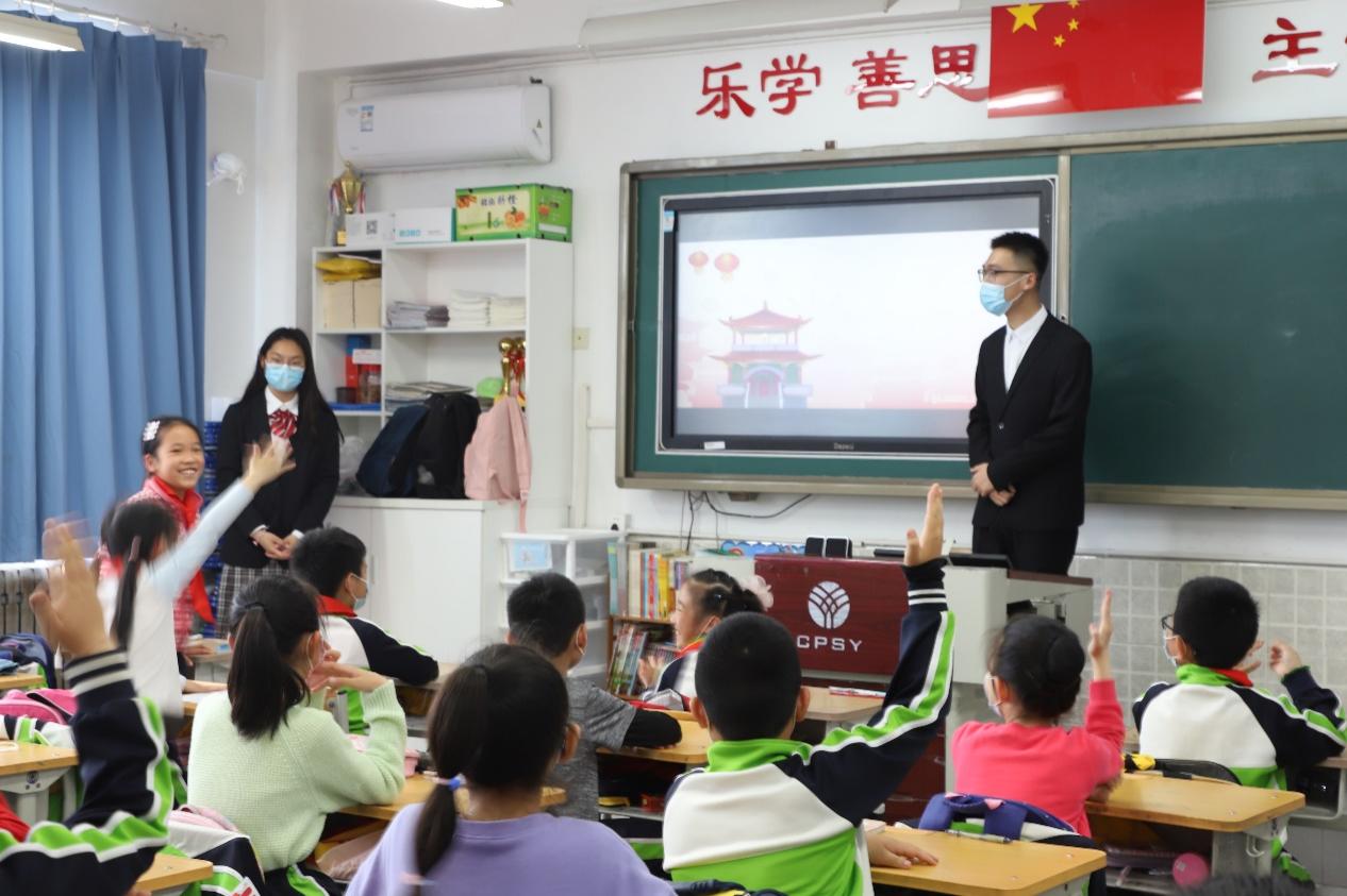 研习团成员公共2004班班长武昱含为华电附小四年级一班的同学们带来“国旗背后的故事——国旗的诞生”。讲述过程中,武昱含同学采用图片、文字和视频等方式,跟着同学们一起学习国旗背后的故事。曾联松先生废寝忘食地创作国旗、五角星的含义、开国大典珍贵视频。同学们都纷纷惊叹道“哇!我们的国旗背后竟然还有这么有趣的故事呀!”“我认识曾联松先生了!”。当听到毛主席说“中华人民共和国、中央人民政府今天成立了!”时,同学们都激动的跳了起来,感叹道“我为祖国骄傲。”“我觉得我们的祖国很伟大。”“我们中国再也不是那个被别人欺负的国家了!”党史小课堂引发了同学们的思考与共鸣,坚定了“少年强、青年强则中国强”的信念。