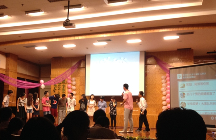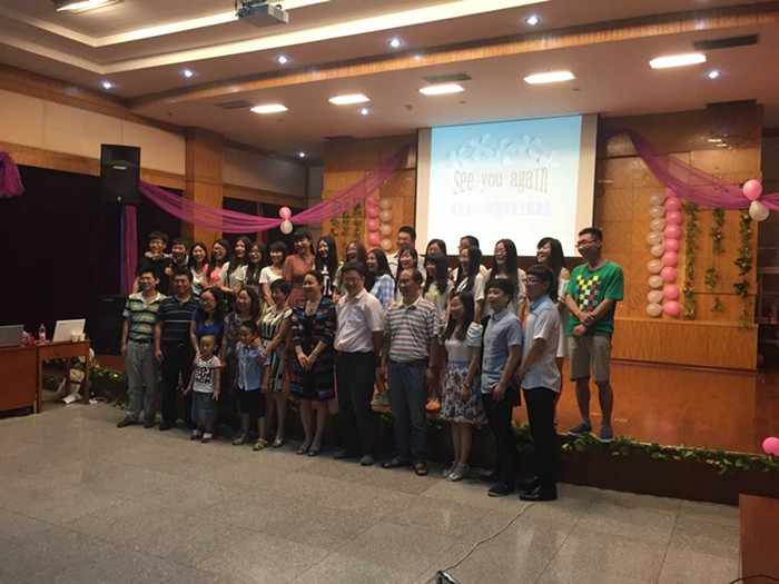 本网保定讯:6月14日晚,由英语系学生会主办的英语系2015年送毕业生联欢会“See You Again”在艺教中心举办。校团委副书记王家,英语系主任张莉、副主任刘洋,党总支书记张冬生、副书记刘持伟,系团委书记宣兆卫及各任课老师应邀参加了此次联欢。